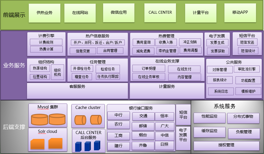 供熱產(chǎn)業(yè)發(fā)展隨著城鎮(zhèn)化進(jìn)程面臨巨大的市場空間,集團(tuán)公司高度重視供熱產(chǎn)業(yè)發(fā)展,將供熱產(chǎn)業(yè)定位為與發(fā)電產(chǎn)業(yè)相同地位的兩大產(chǎn)業(yè)支柱,并納入企業(yè)戰(zhàn)略發(fā)展規(guī)劃。山東公司也制定了在2020年達(dá)到3億平方米的供熱產(chǎn)業(yè)發(fā)展目標(biāo),實(shí)現(xiàn)熱電產(chǎn)業(yè)協(xié)同發(fā)展。建設(shè)統(tǒng)一的供熱管理及營銷系統(tǒng)滿足產(chǎn)業(yè)快速發(fā)展和集團(tuán)公司三級(jí)管理要求,是營銷平臺(tái)建設(shè)的先期任務(wù),也為實(shí)現(xiàn)電力、熱力統(tǒng)一銷售業(yè)務(wù)探索經(jīng)驗(yàn)。